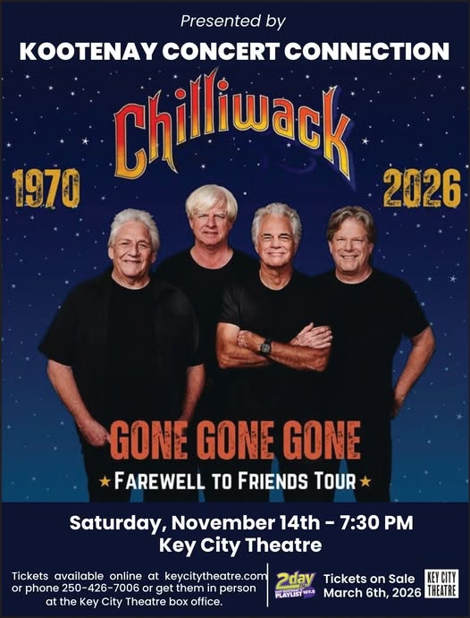 Legendary Canadian rock band Chilliwack is hitting the road one final time with their Gone Gone Gone – Farewell to Friends Tour, stopping at Key City Theatre in Cranbrook on November 14 for an unforgettable evening of music and memories.